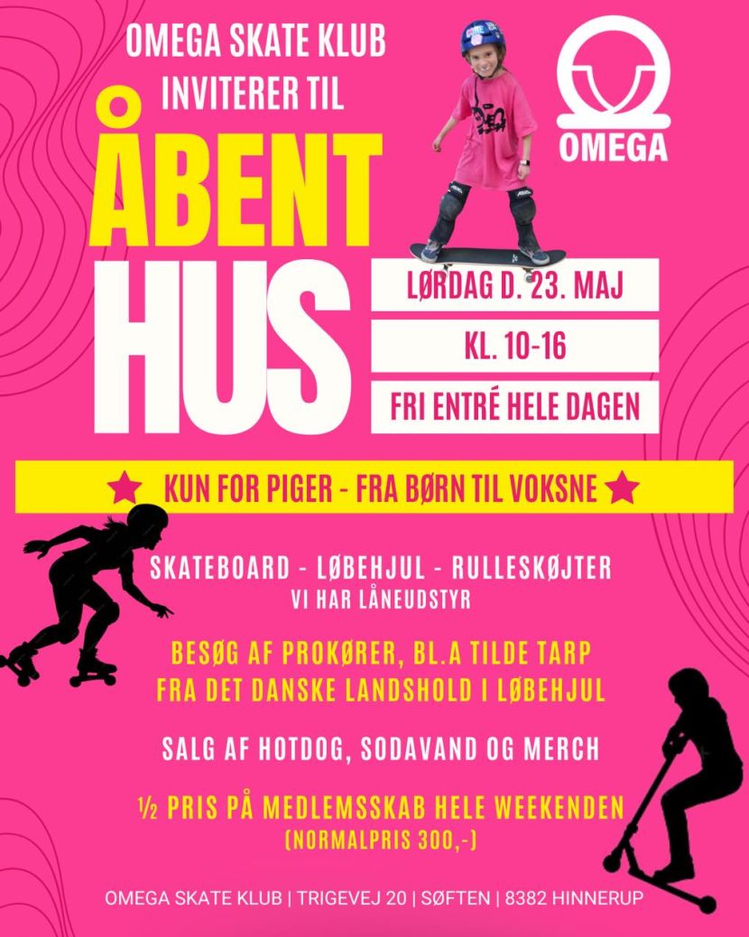 Omega Skate Klub inviterer til åbent hus for piger lørdag d. 23. maj fra kl. 10-16. Der er fri entre hele dagen.